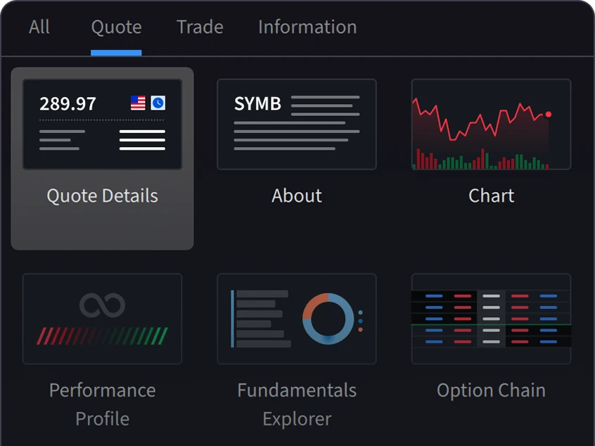 Trade stocks, options, futures, currencies, bonds and more from one screen.