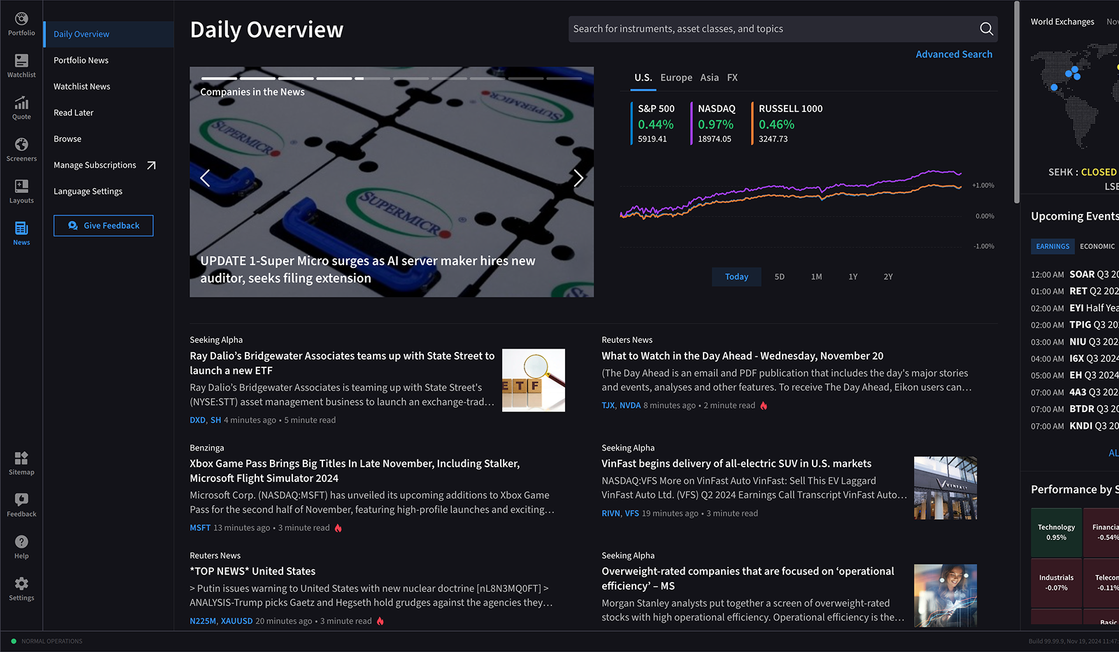 Screen markets, track watchlists and explore opportunities worldwide.